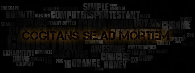 Possibly the first ever render for CSAM. I was into fixed-width fonts at that time, and felt like including the accents. Cogito se ad Morti...not sure where I got the original, but Gabriel set me straight a little bit later, and that's how we're here now.